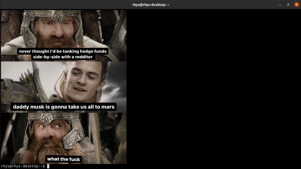 This happened a few times with a few different apps. Either the snap already existed, or on a couple of occasions, the upstream was less than friendly towards snaps, so I didn’t bother. Snaps are pretty mature by this point and so it’s not surprising that there is a lot of stuff out there already snapped. Or that they have their detractors. But neither are good reasons to stop developers benefitting from snaps when they can. Eventually, I found viu. An image and GIF viewing application. Woo.