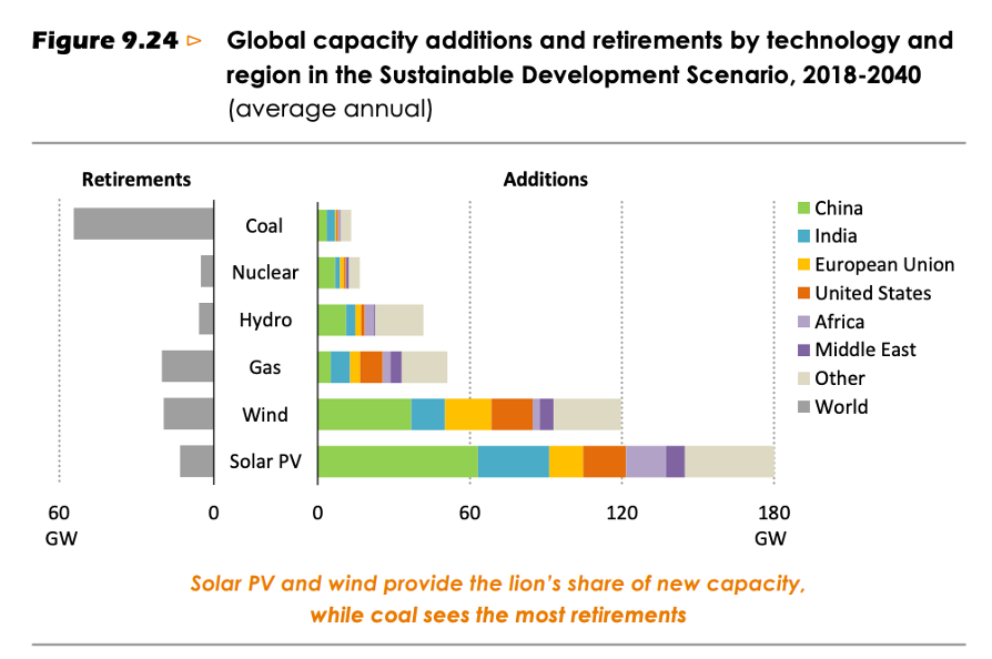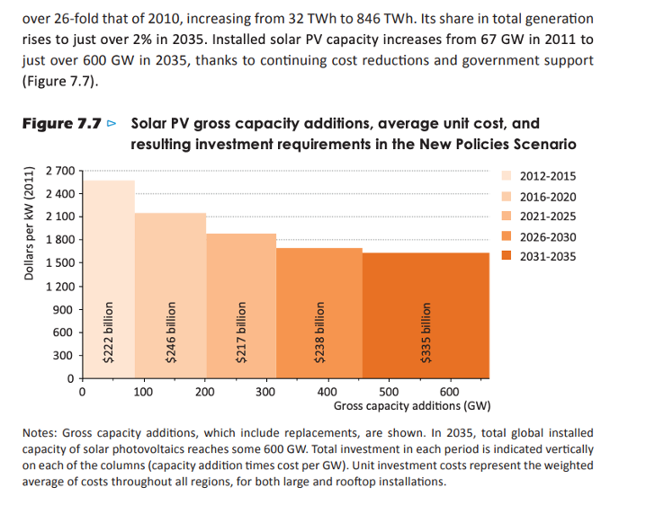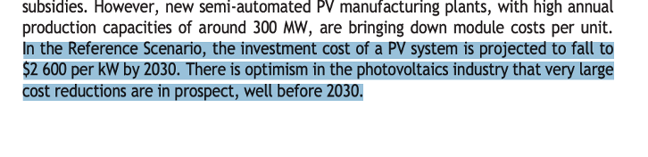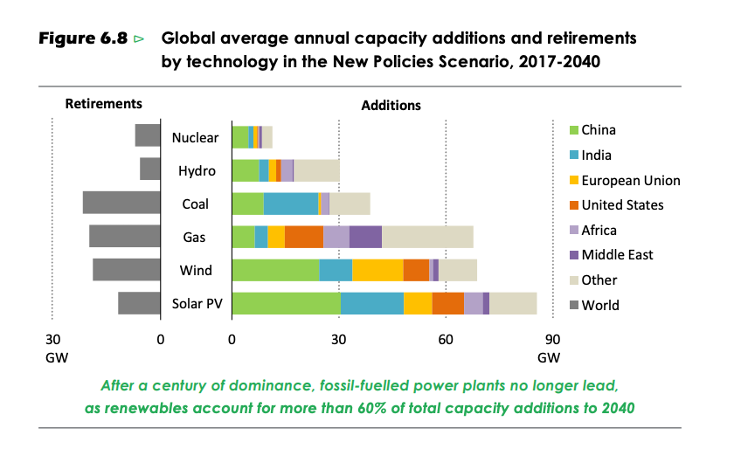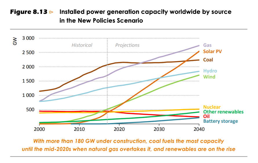 There is a warm fuzzy feeling in the report though as it is stated several times throughout that in this new policy scenario prediction solar will outcompete coal in power generation by 2040: