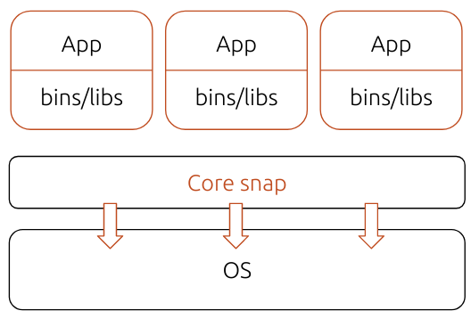Snaps are containerised software packages that focus on being singular application containers. Where LXC could be seen as a machine container, Docker as a process container, snaps can be seen as application containers. Snaps package code and dependencies in a similar way to containers to keep the application content isolated and immutable. They have a writable area that is separated from the rest of the system, but are visible to the host via user application-defined interfaces and behave more like traditional Debian apt packages.